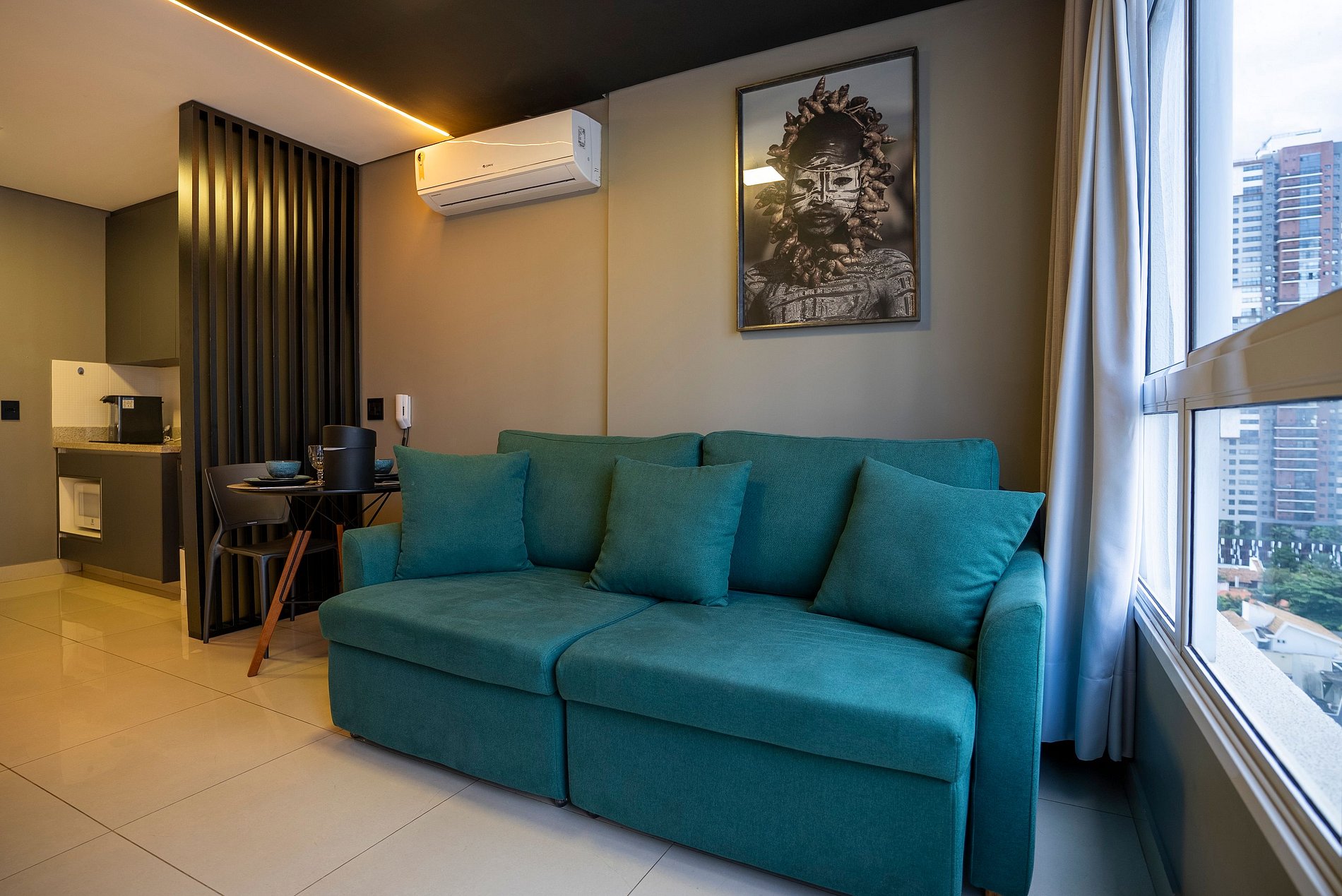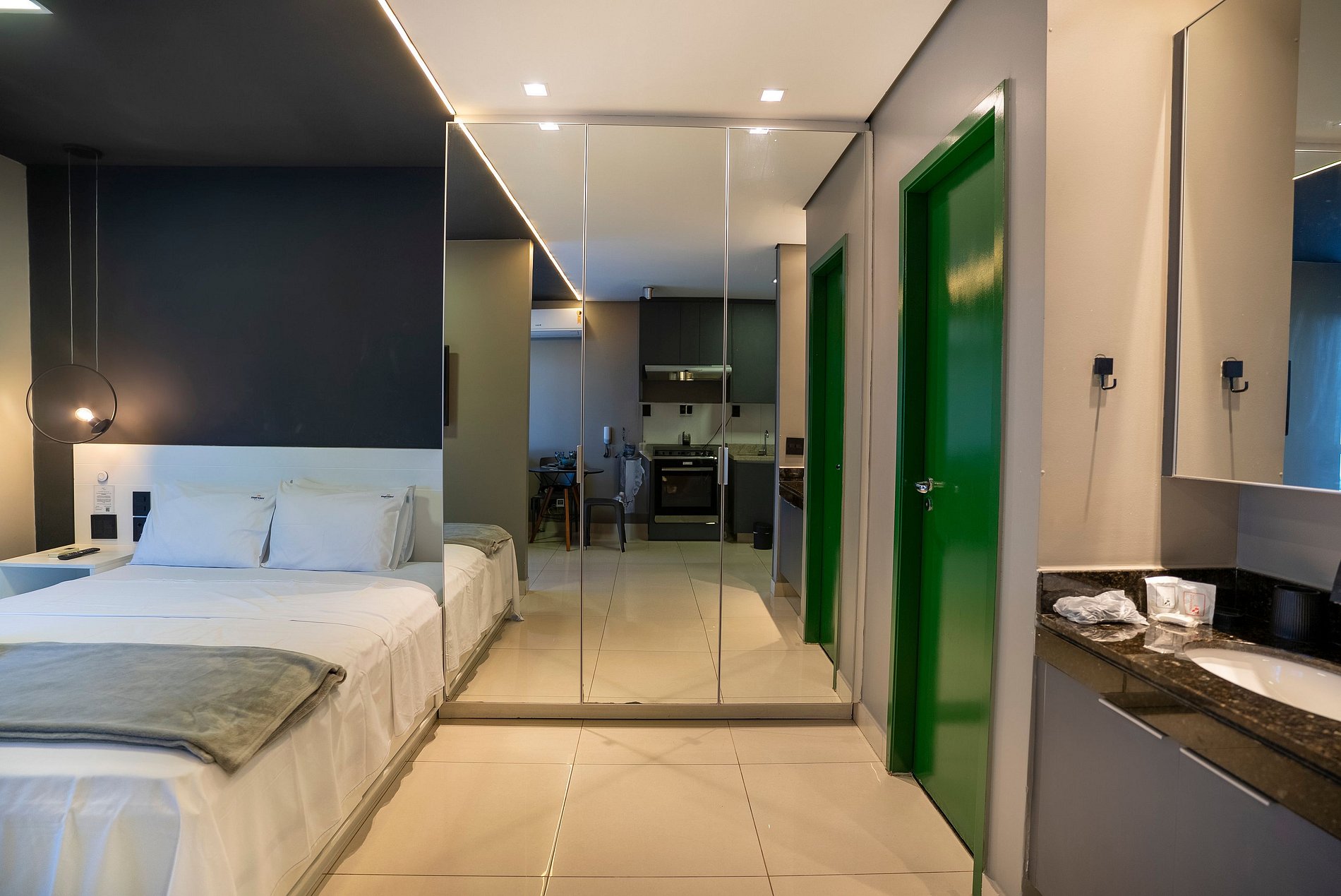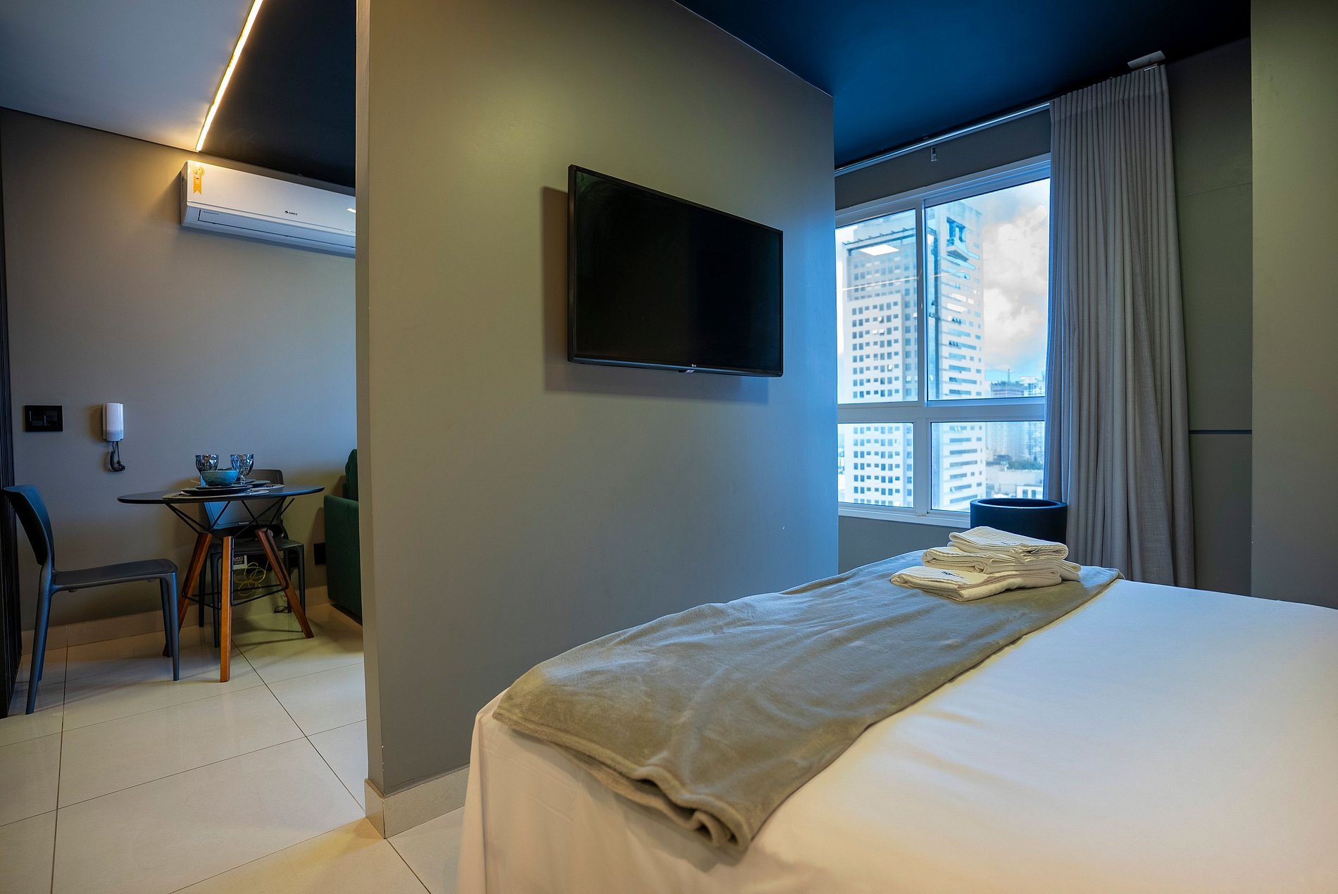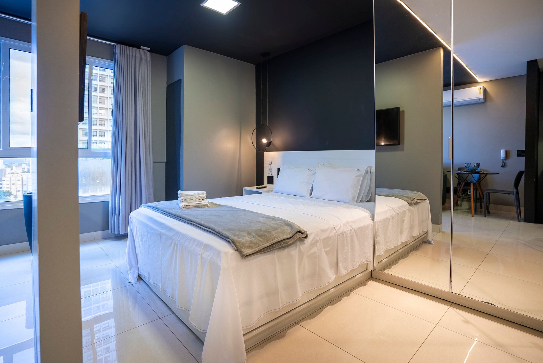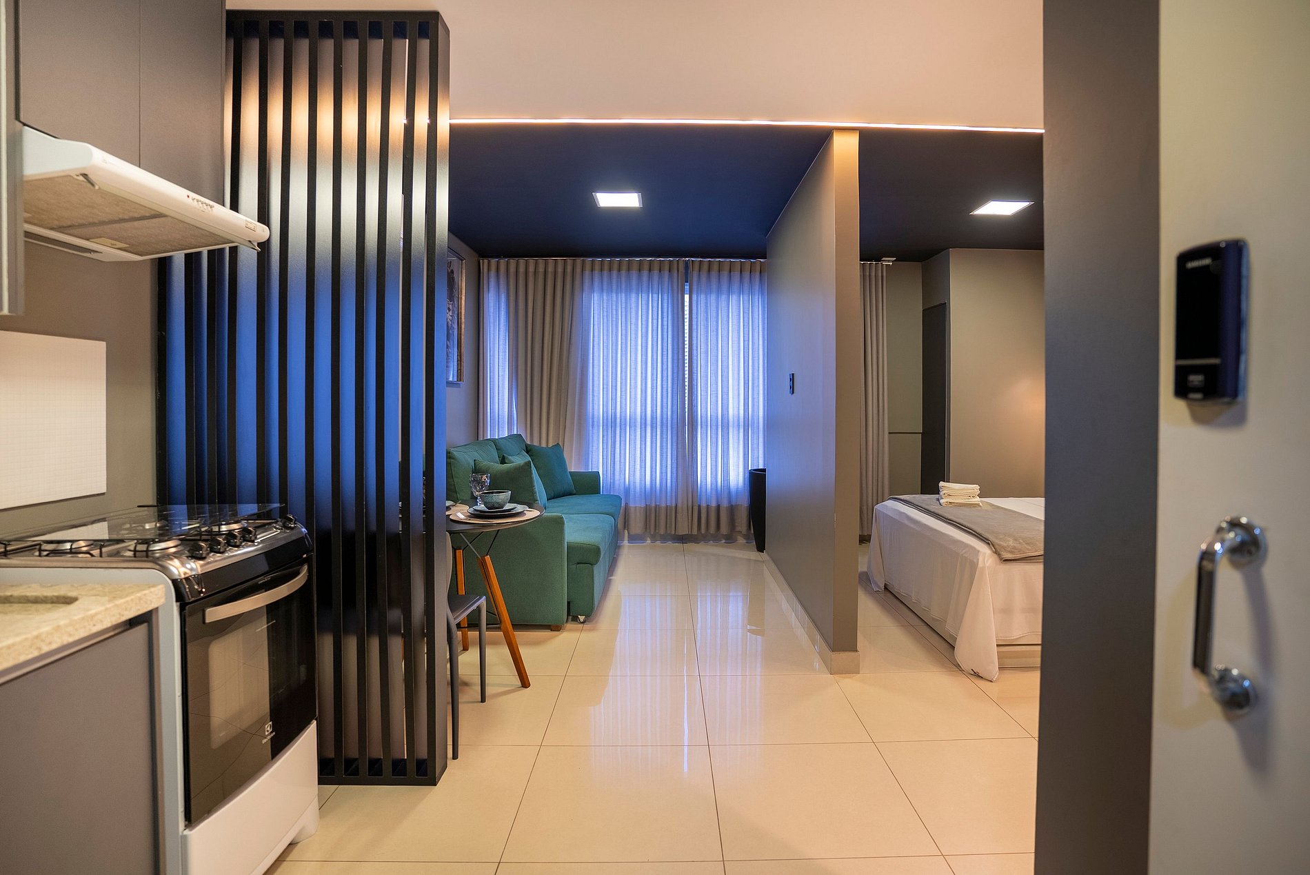 Self check in, ou seja, a autorização de acesso é feita de maneira remota. Hóspede deverá se identificar na recepção ao fazer o check in, enviaremos a senha para acesso ao flat através de aplicativo.