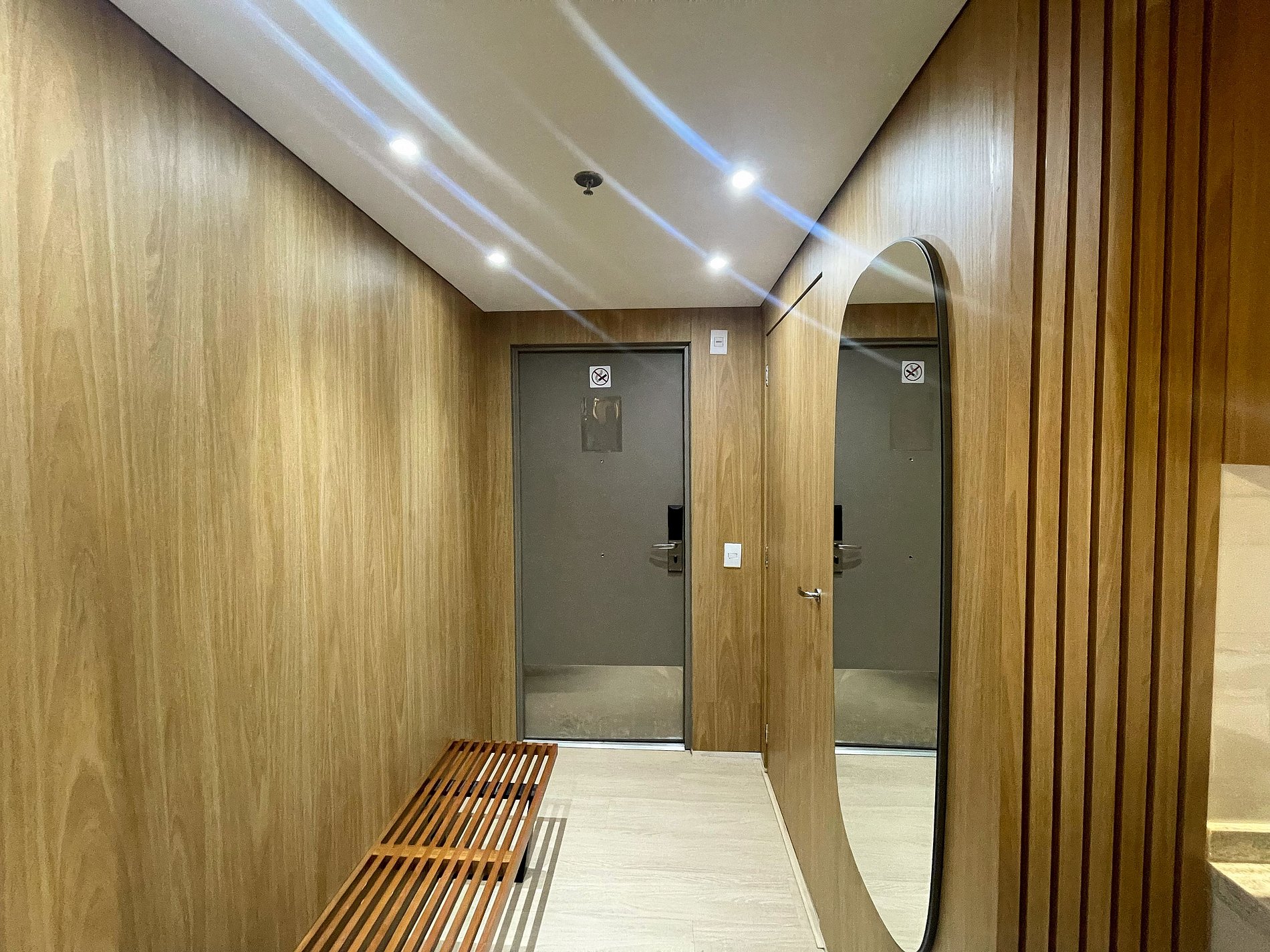 Self check in, ou seja, a autorização de acesso é feita de maneira remota. Hóspede deverá se identificar na recepção ao fazer o check in para retirar o cartão de acesso.