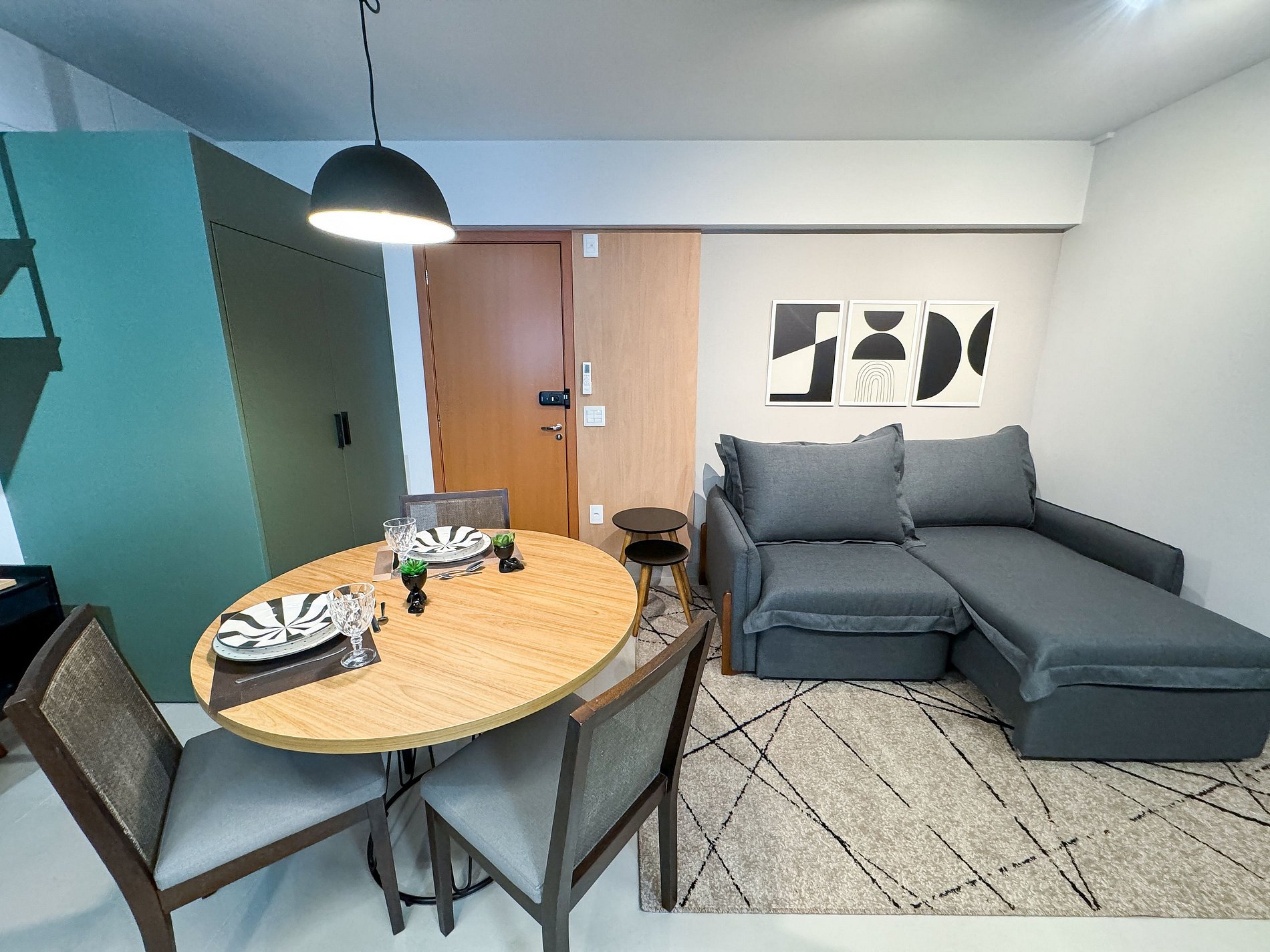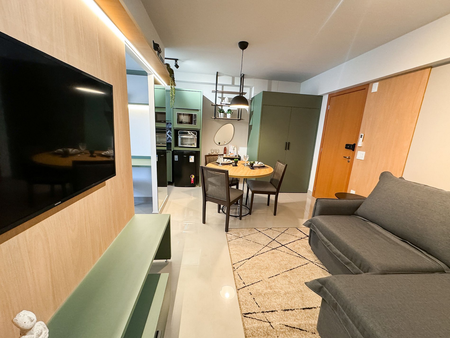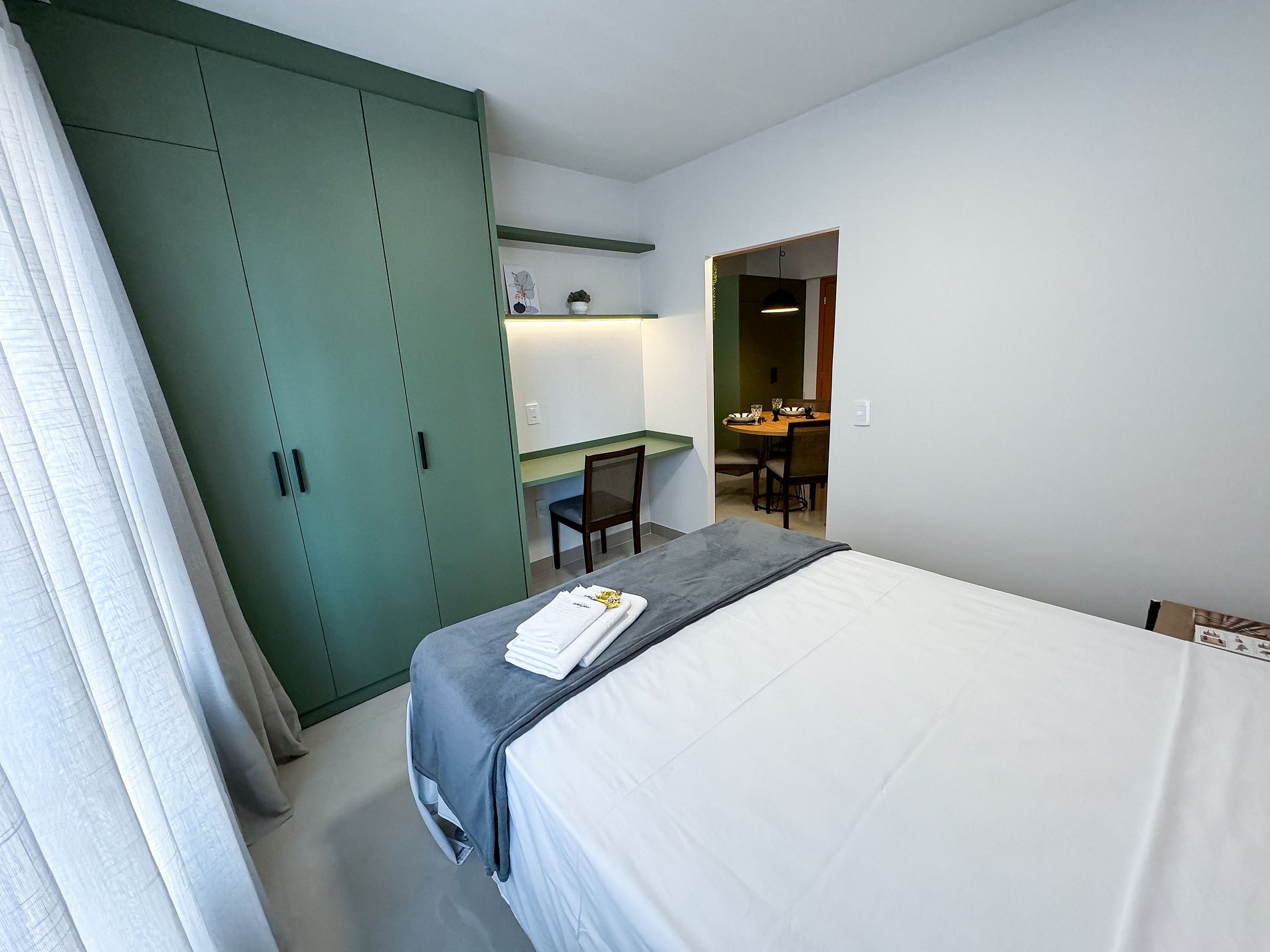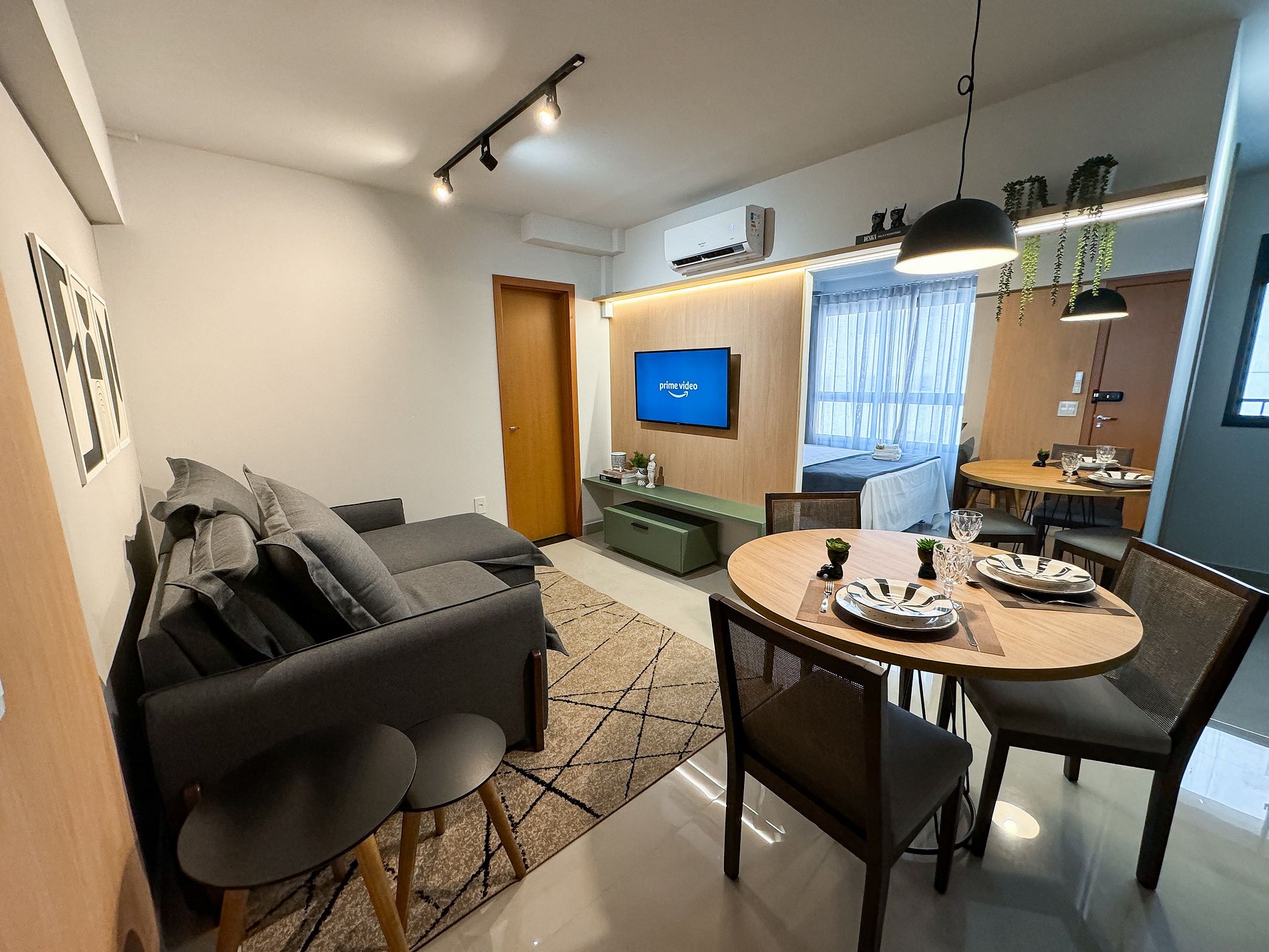 #1103 Flat no Ritmo Bueno, localizado no Setor Bueno, com bares, restaurantes e lojas nas proximidades.