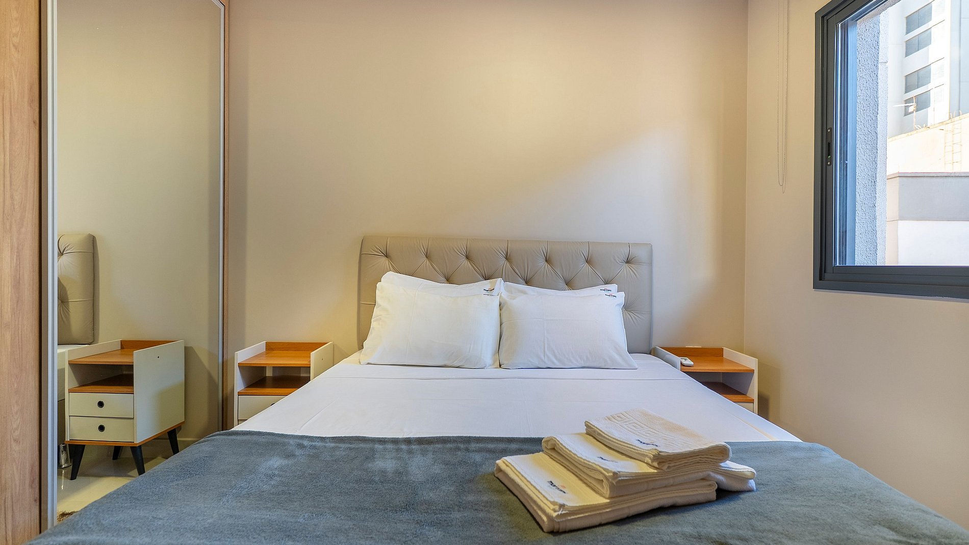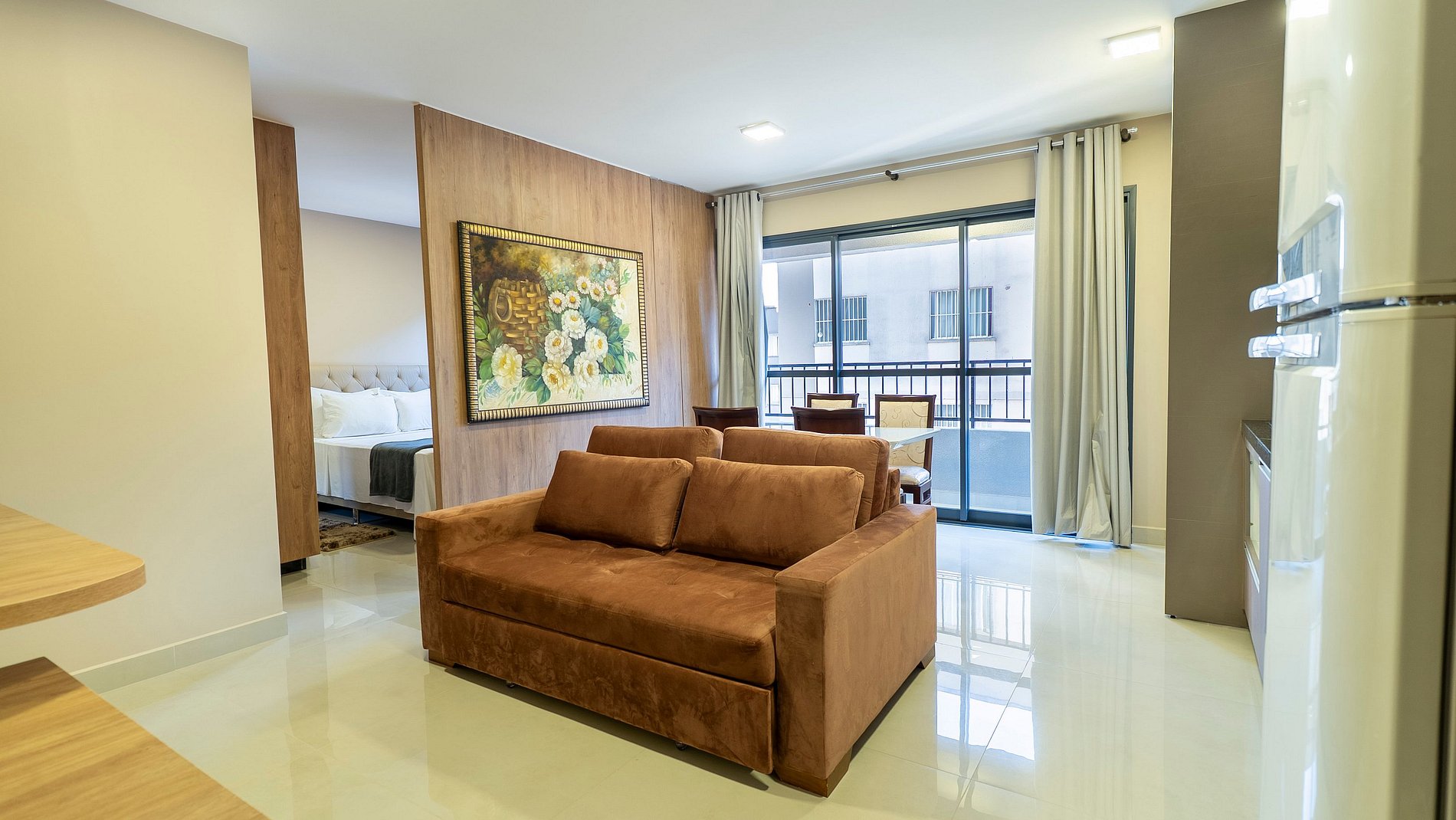 #1505 Flat no Ritmo Bueno, localizado no Setor Bueno, com bares, restaurantes e lojas nas proximidades.