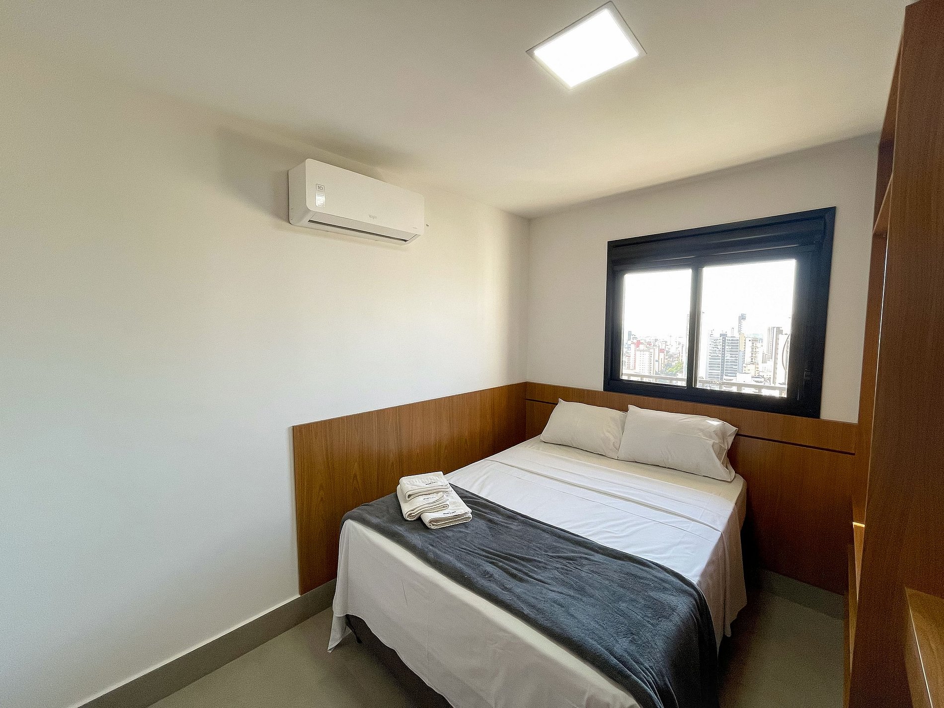 Self check in, ou seja, a autorização de acesso é feita de maneira remota. Hóspede deverá se identificar na recepção ao fazer o check in, enviaremos a senha para acesso ao flat através de aplicativo.