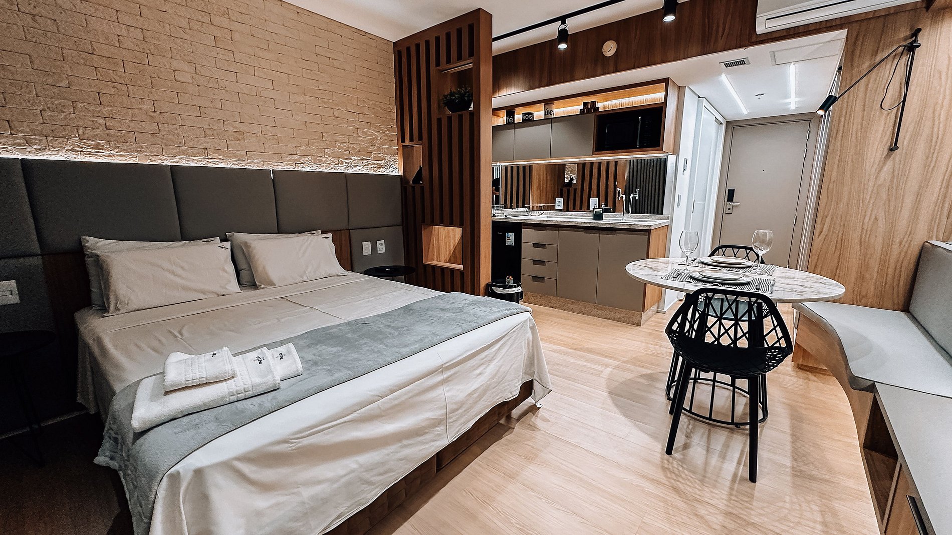 Self check in, ou seja, a autorização de acesso é feita de maneira remota. Hóspede deverá se identificar na recepção ao fazer o check in para retirar o cartão de acesso.