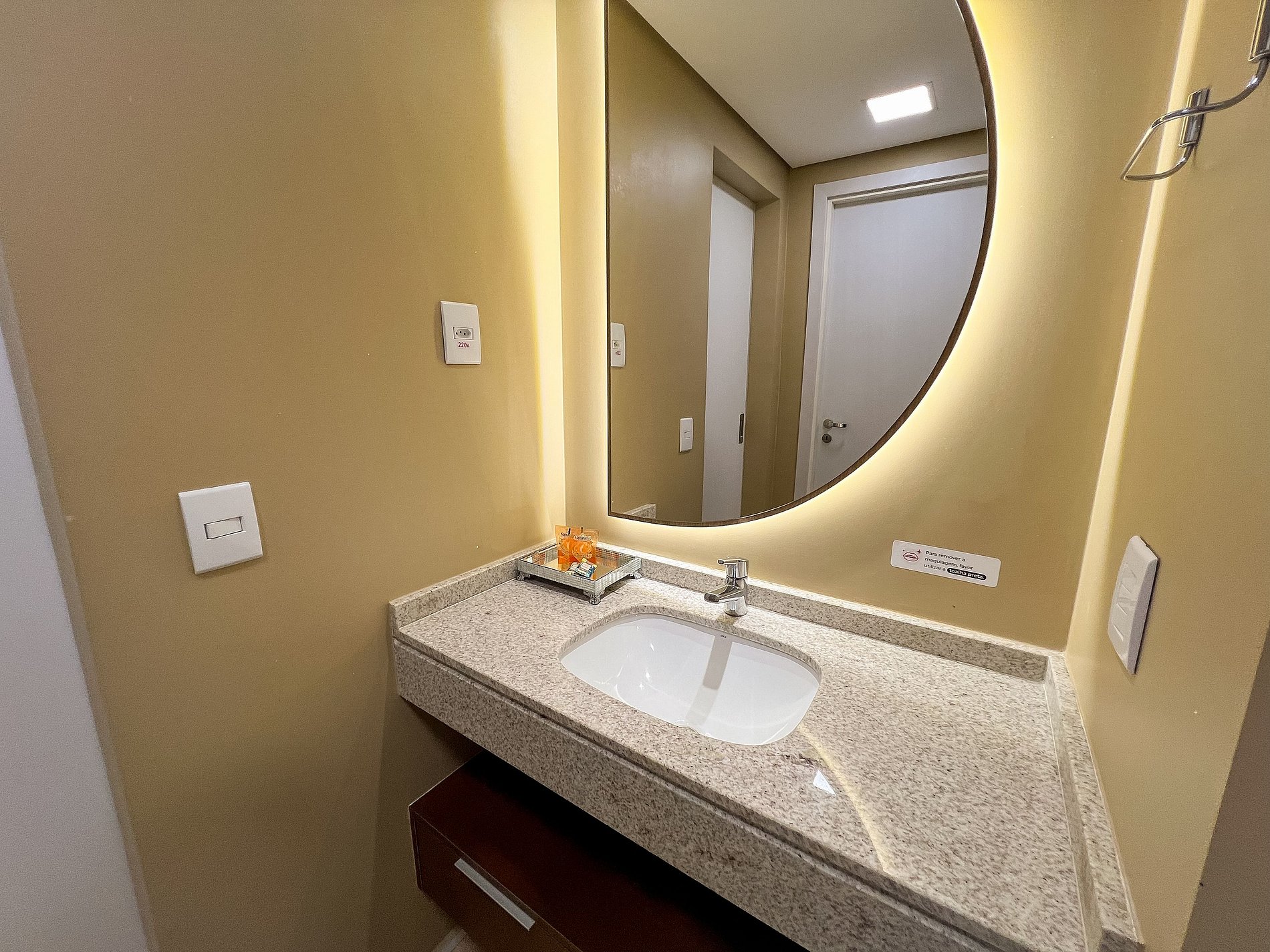 Self check in, ou seja, a autorização de acesso é feita de maneira remota. Hóspede deverá se identificar na recepção ao fazer o check in para retirar o cartão de acesso.