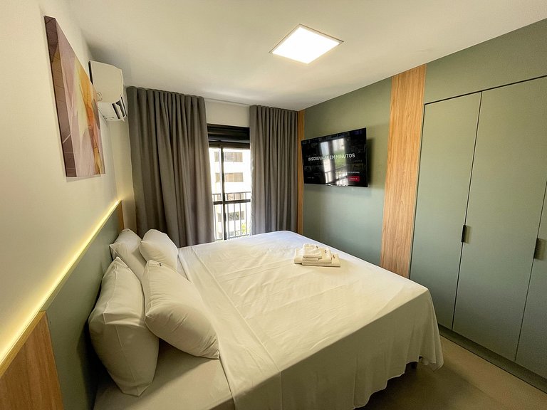 Self check in, ou seja, a autorização de acesso é feita de maneira remota. Hóspede deverá se identificar na recepção ao fazer o check in, enviaremos a senha para acesso ao flat através de aplicativo.