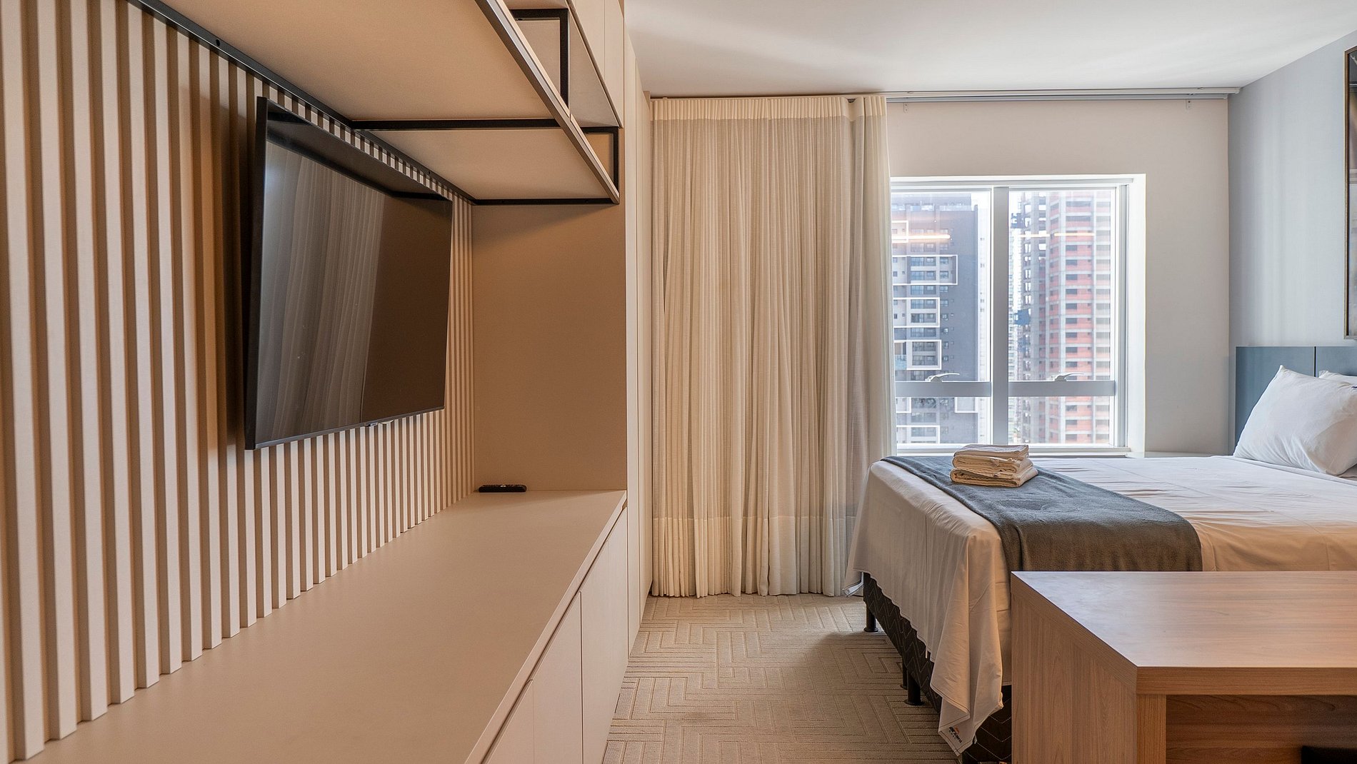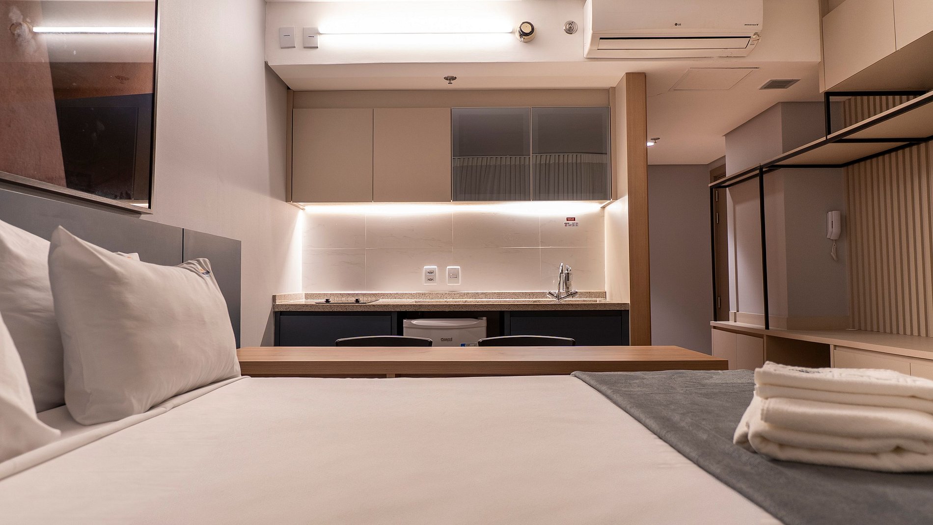 Self check in, ou seja, a autorização de acesso é feita de maneira remota. Hóspede deverá se identificar na recepção ao fazer o check in, enviaremos a senha para acesso ao flat através de aplicativo.