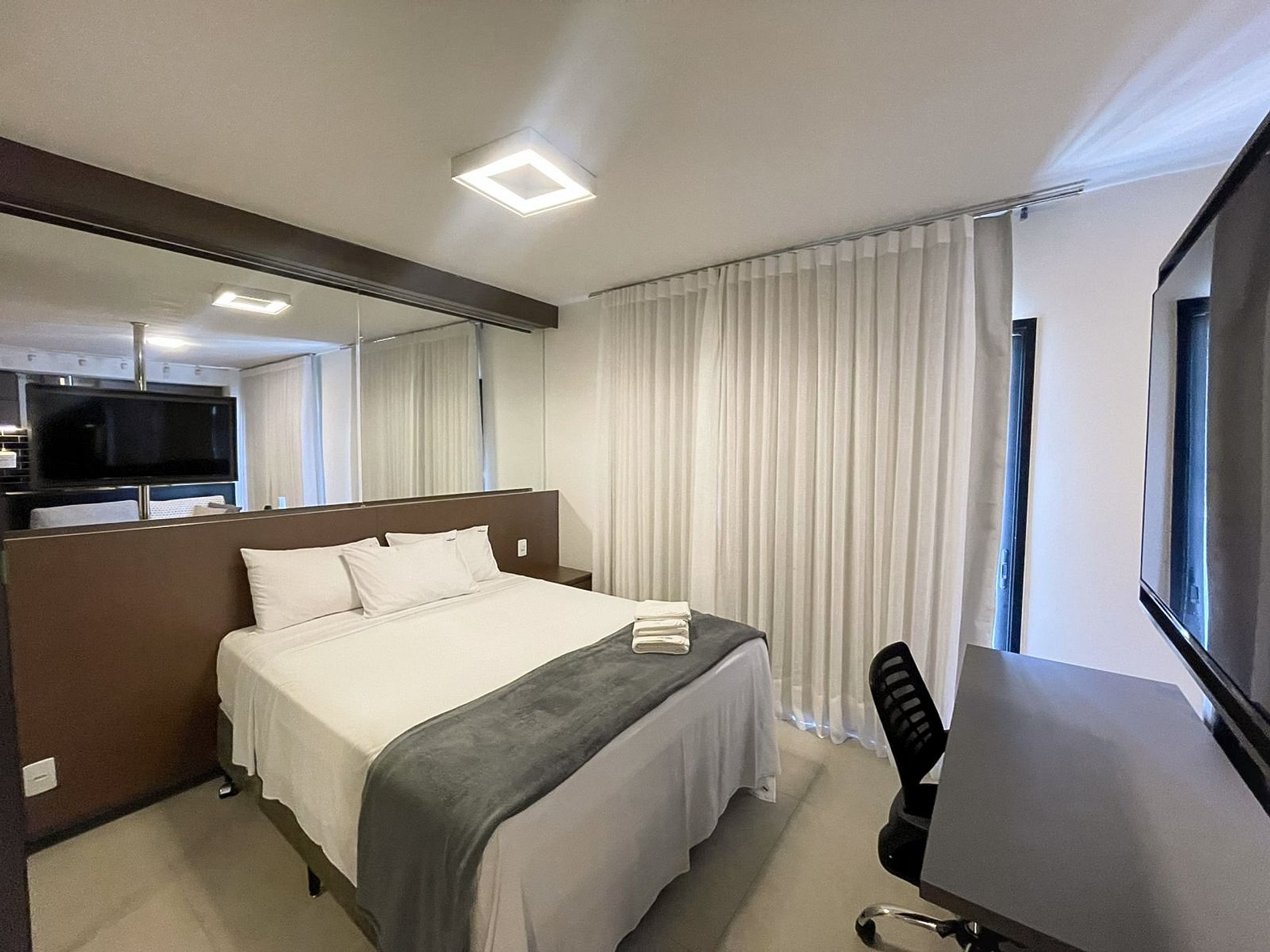 Self check in, ou seja, a autorização de acesso é feita de maneira remota. Hóspede deverá se identificar na recepção ao fazer o check in, enviaremos a senha para acesso ao flat através de aplicativo.