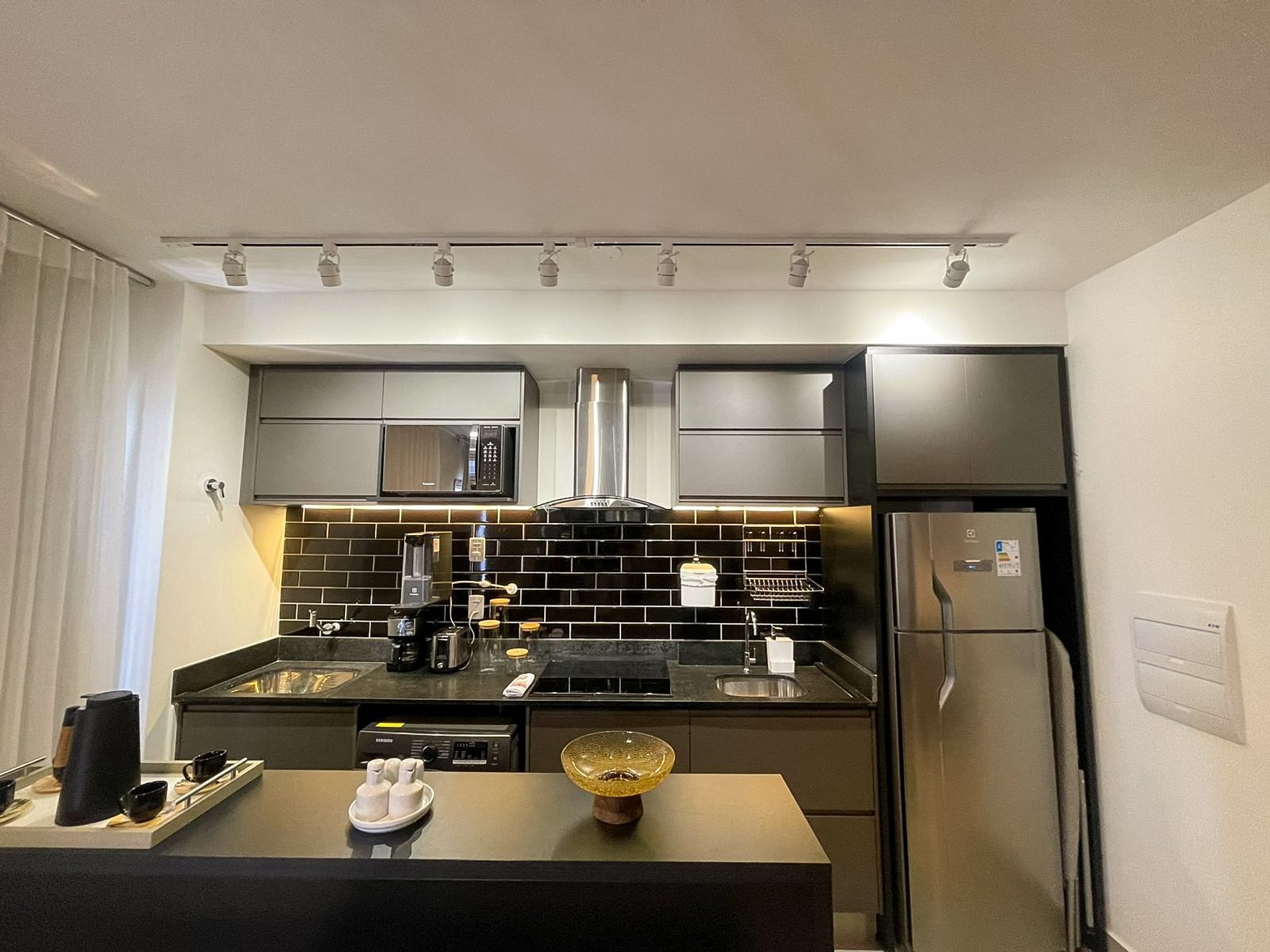 Possui os itens básicos (microondas, panelas, talheres, kit mesa posta, geladeira, roupa de cama, amenities, toalhas, etc )