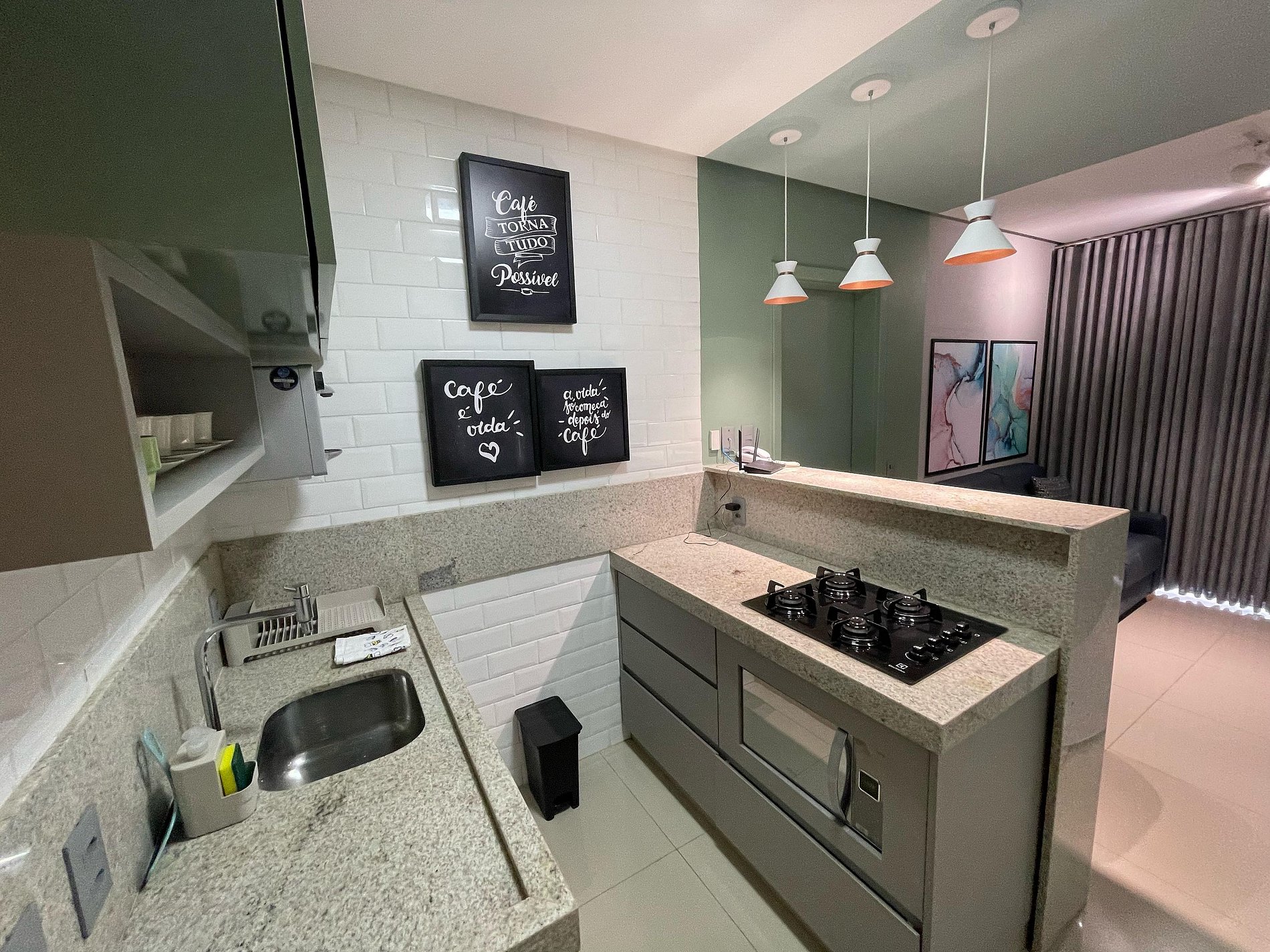 Possui os itens básicos (microondas, panelas, talheres, geladeira, roupa de cama, amenities, toalhas, etc)