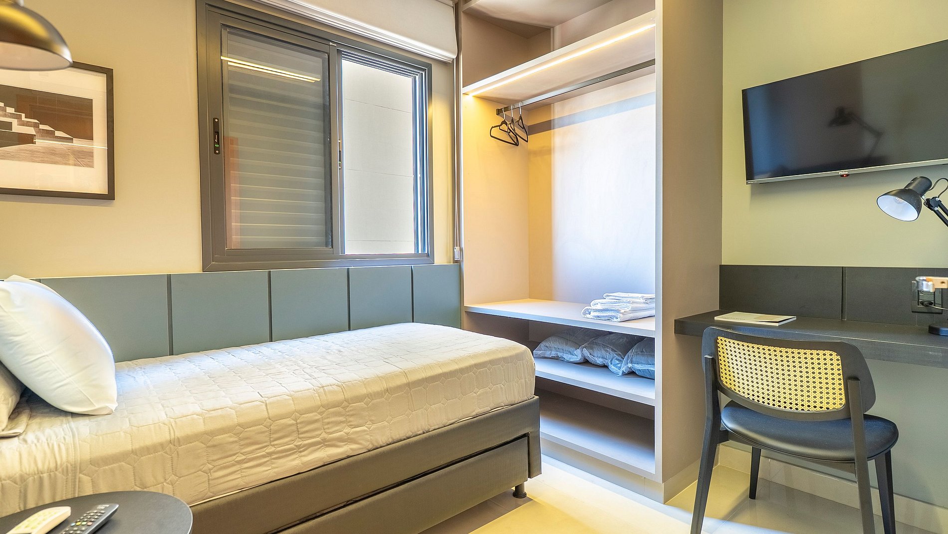 Self check in, ou seja, a autorização de acesso é feita de maneira remota. Hóspede deverá se identificar na recepção ao fazer o check in, enviaremos a senha para acesso ao flat através de aplicativo.