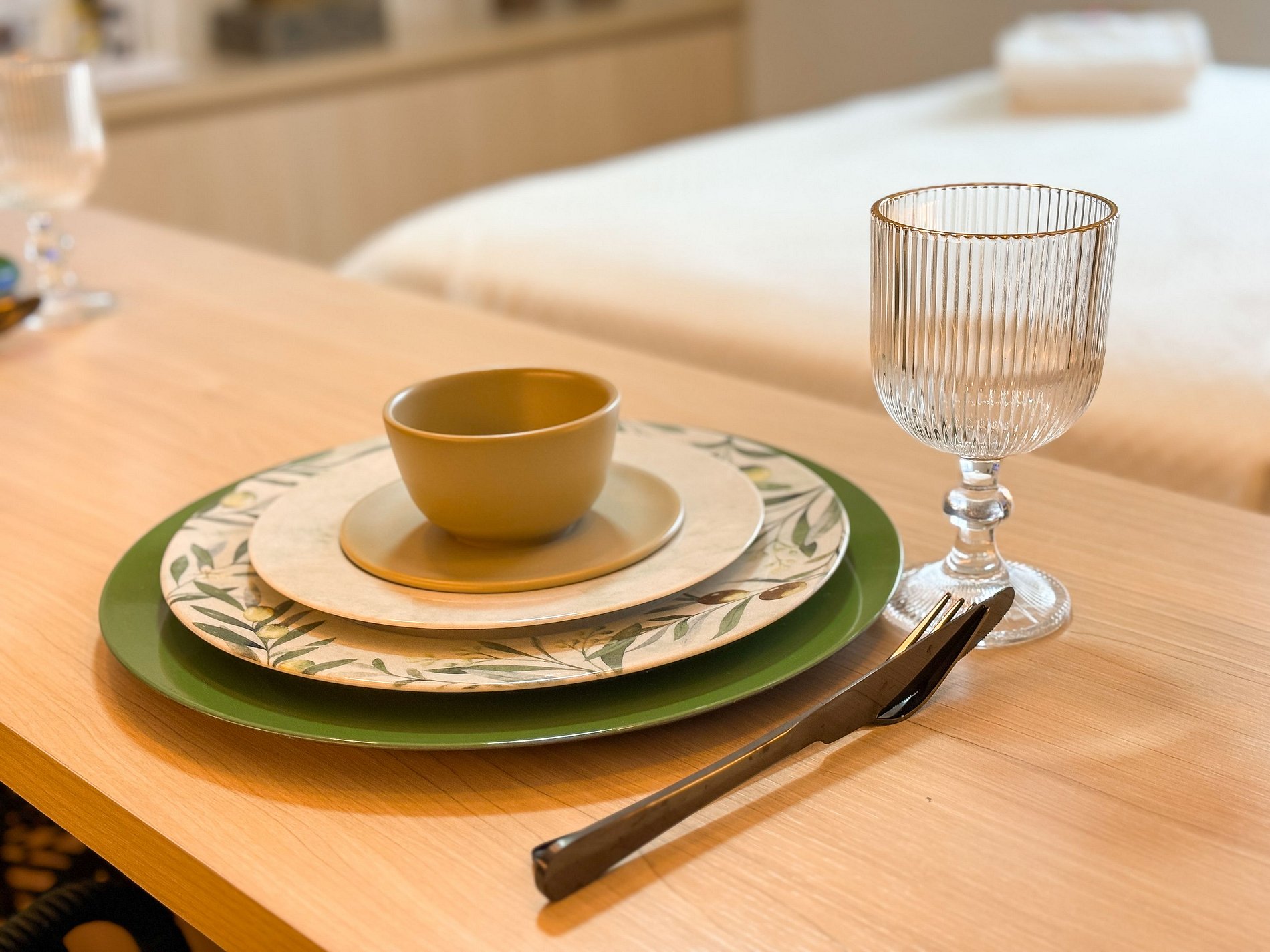 Possui os itens básicos (microondas, panelas, talheres, kit mesa posta, frigobar, roupa de cama, amenities, toalhas, etc)