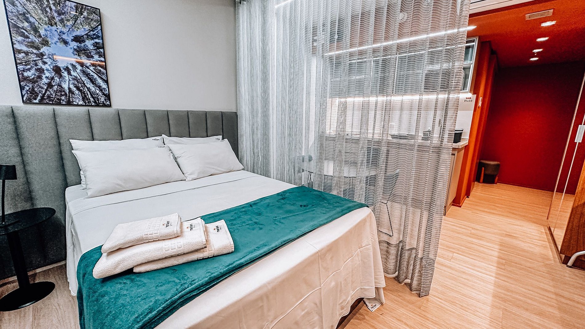 Self check in, ou seja, a autorização de acesso é feita de maneira remota. Hóspede deverá se identificar na recepção ao fazer o check in para retirar o cartão de acesso.