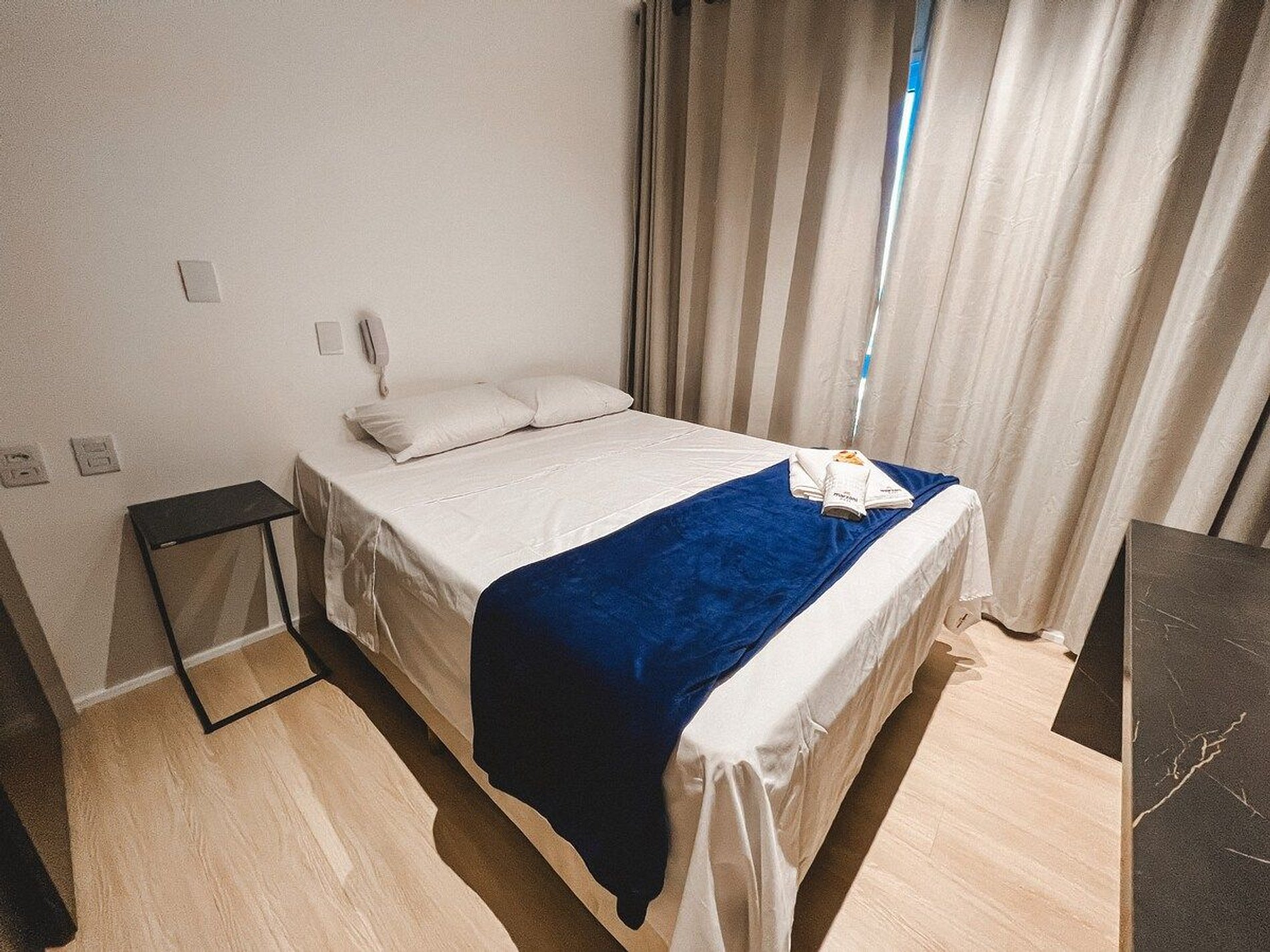 Self check in, ou seja, a autorização de acesso é feita de maneira remota. Hóspede deverá se identificar na recepção ao fazer o check in para retirar o cartão de acesso.