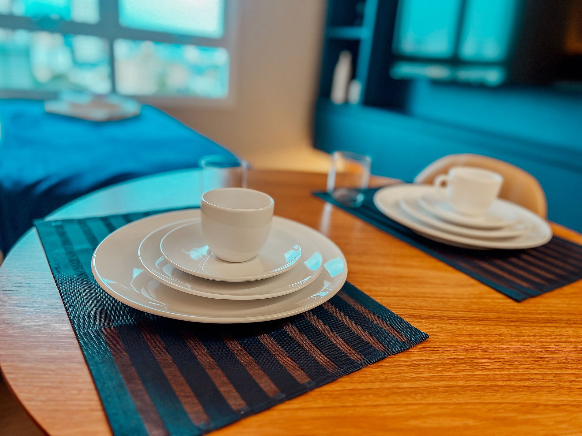 Possui os itens básicos (microondas, panelas, talheres, kit mesa posta, frigobar, roupa de cama, amenities, toalhas, etc )