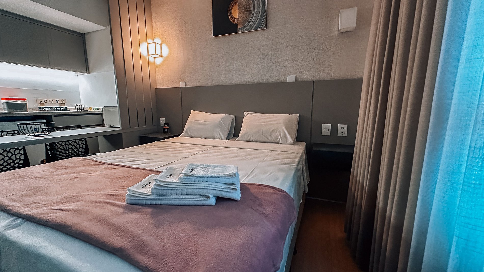 Self check in, ou seja, a autorização de acesso é feita de maneira remota. Hóspede deverá se identificar na recepção ao fazer o check in para retirar o cartão de acesso.
