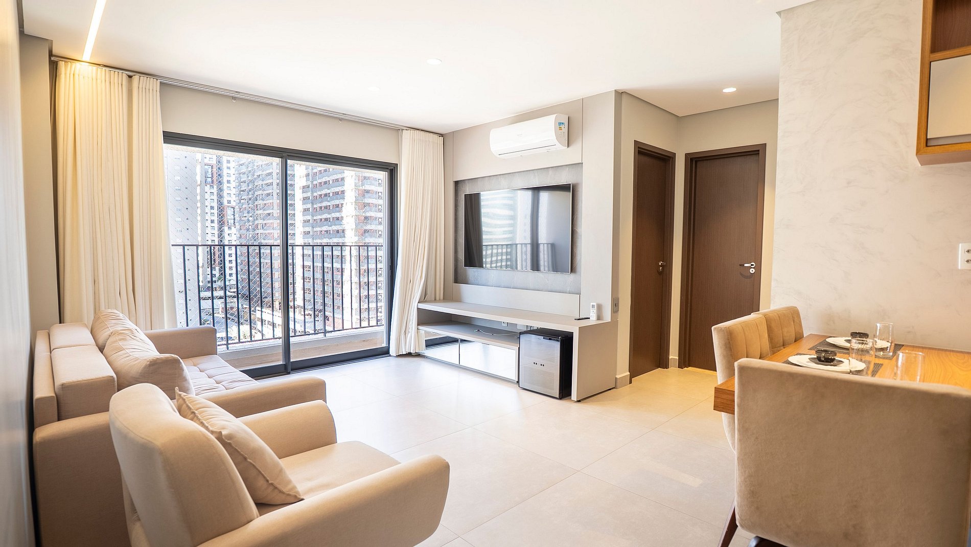 Apartamento de 2 quartos no Citizen Home, localizado Setor Bueno, com restaurantes, bares e lojas nas proximidades.