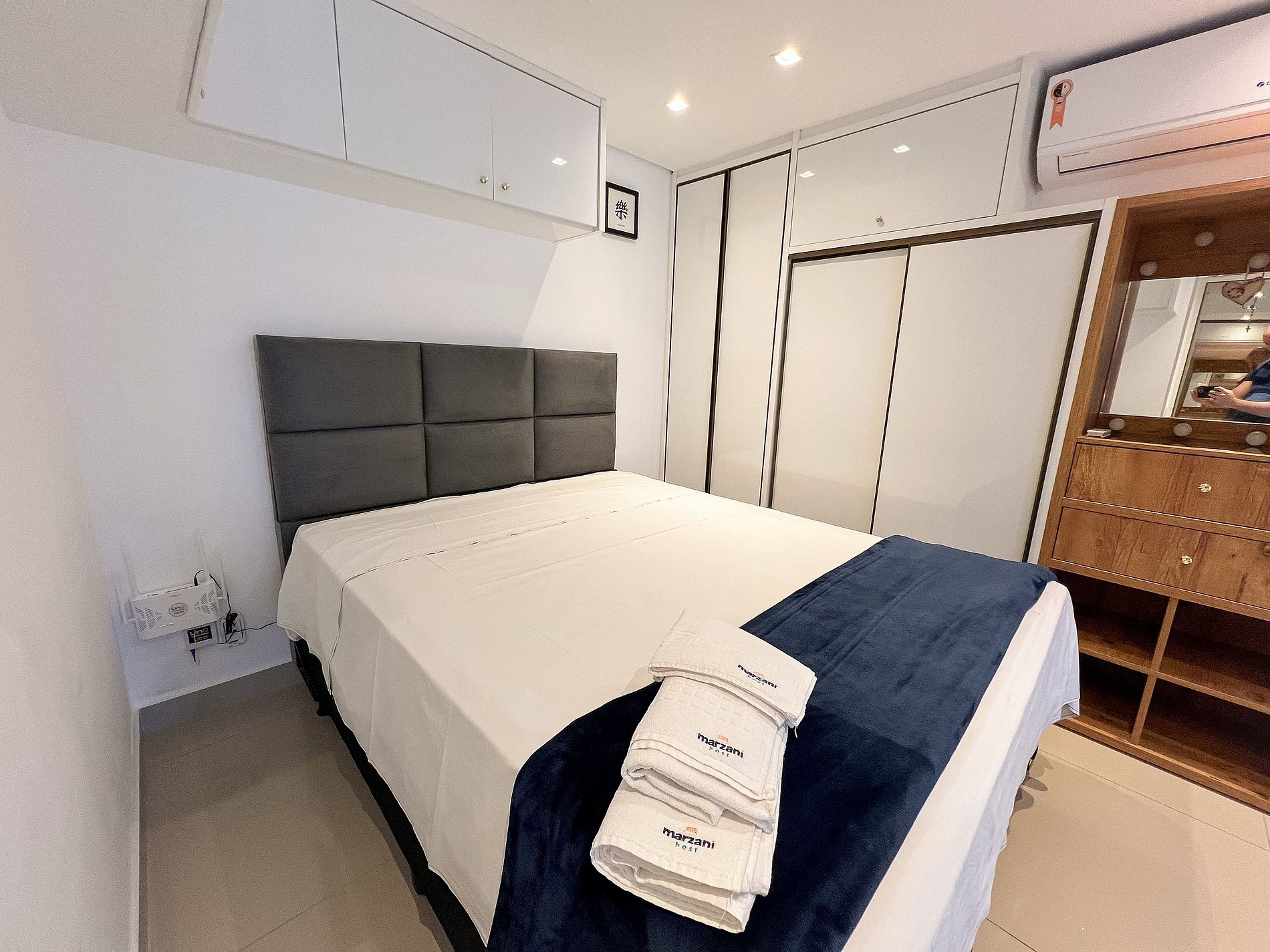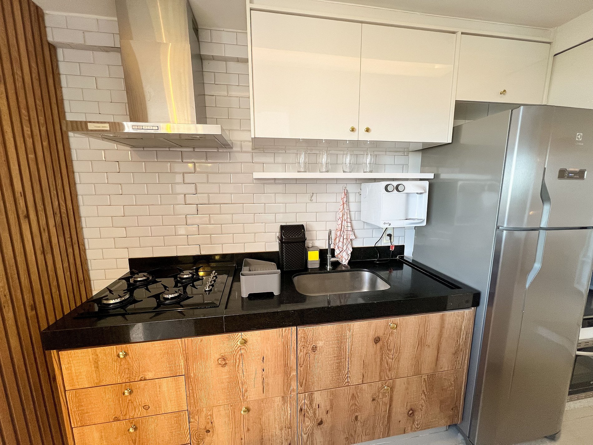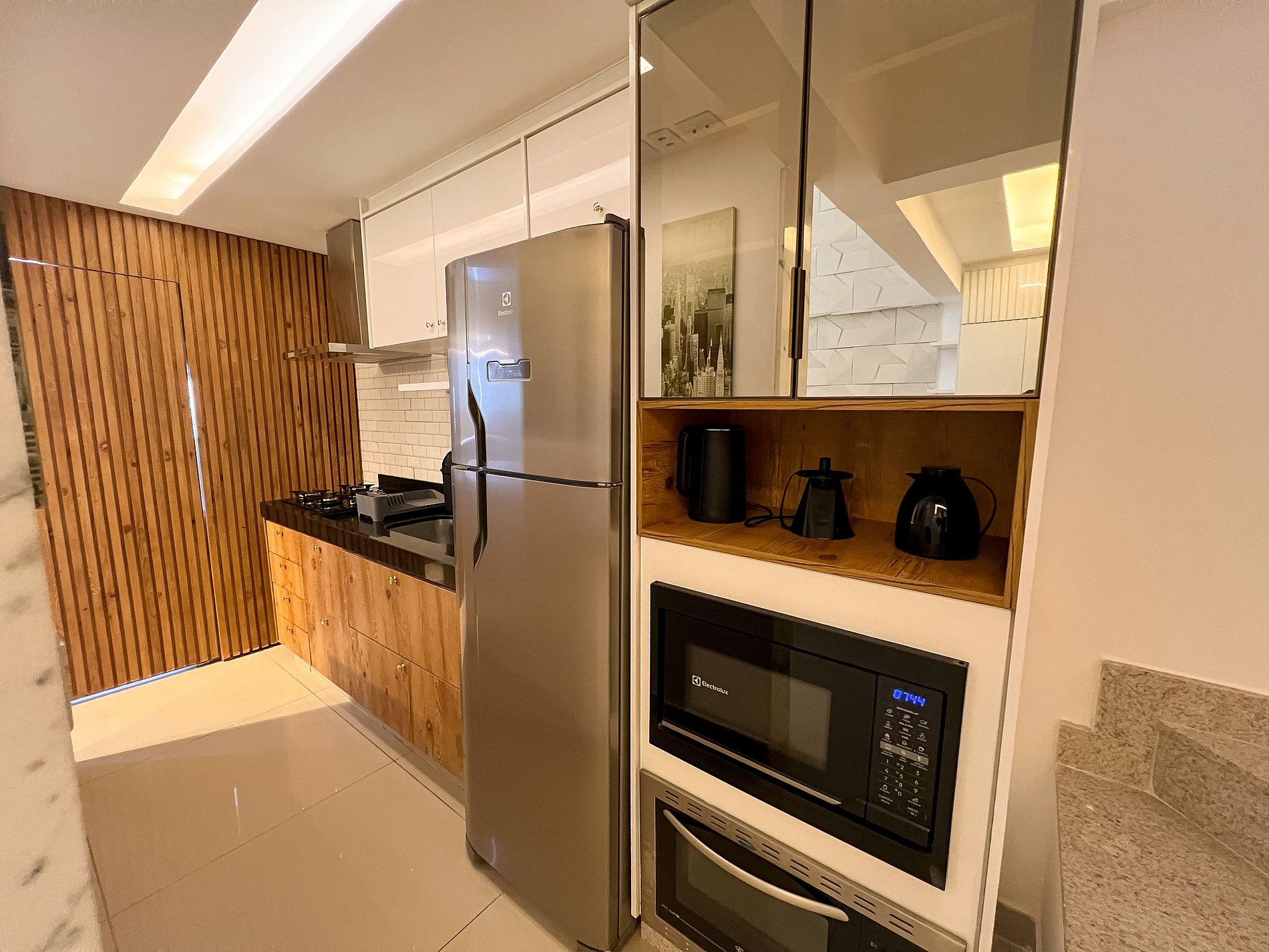 Possui os itens básicos (microondas, panelas, talheres, kit mesa posta, geladeira, roupa de cama, amenities, toalhas, etc)