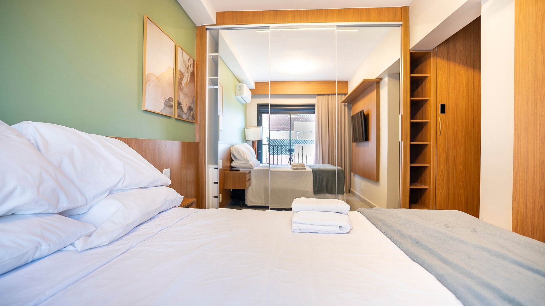 Self check in, ou seja, a autorização de acesso é feita de maneira remota. Hóspede deverá se identificar na recepção ao fazer o check in, enviaremos a senha para acesso ao flat através de aplicativo.