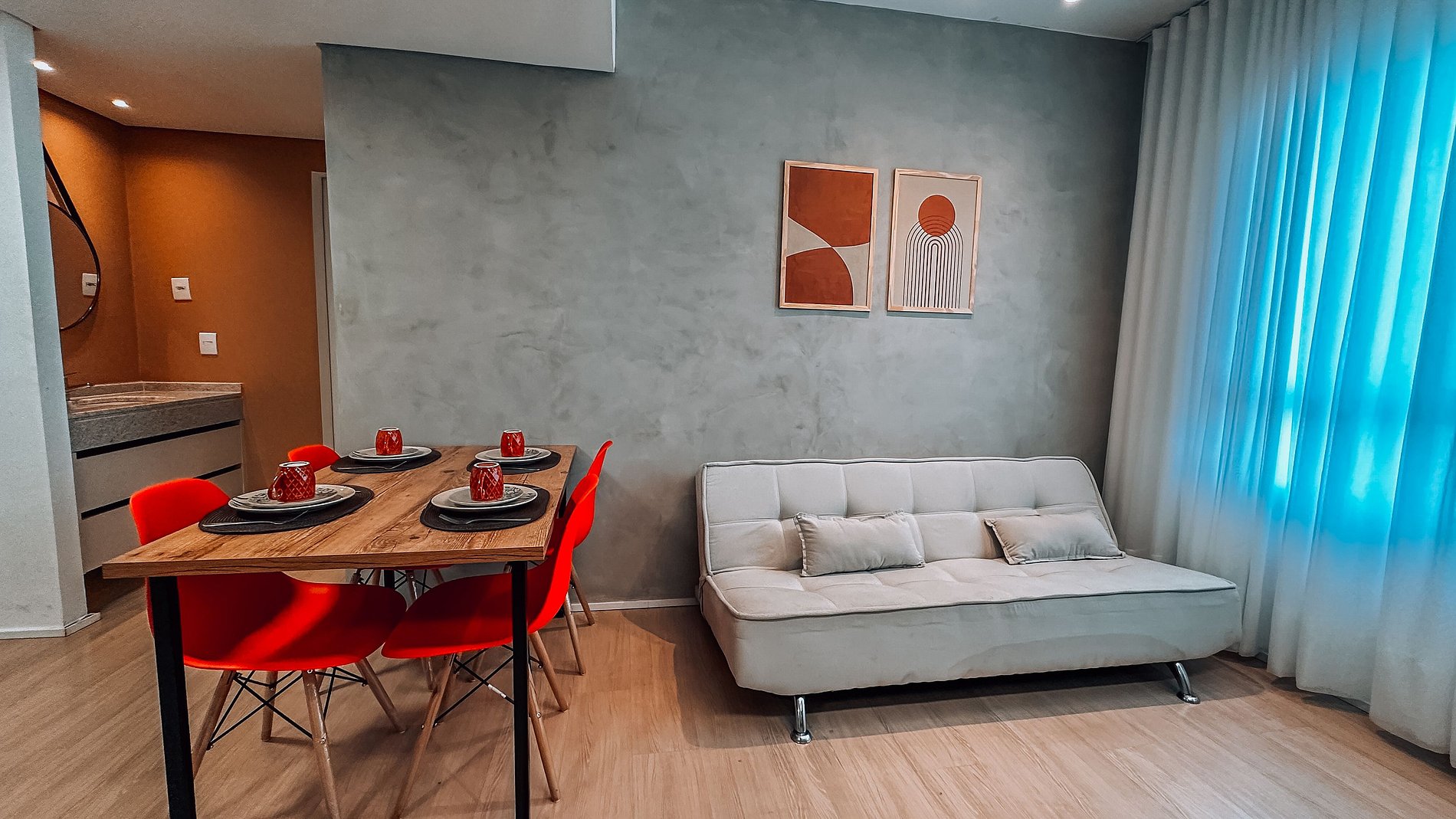 - Sofá cama confortável na sala