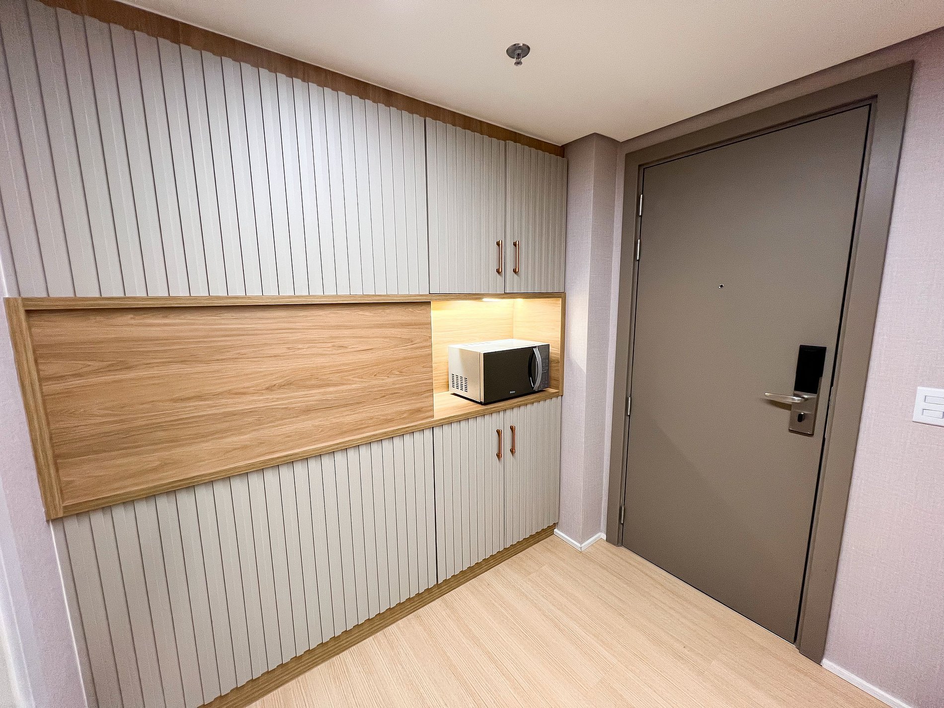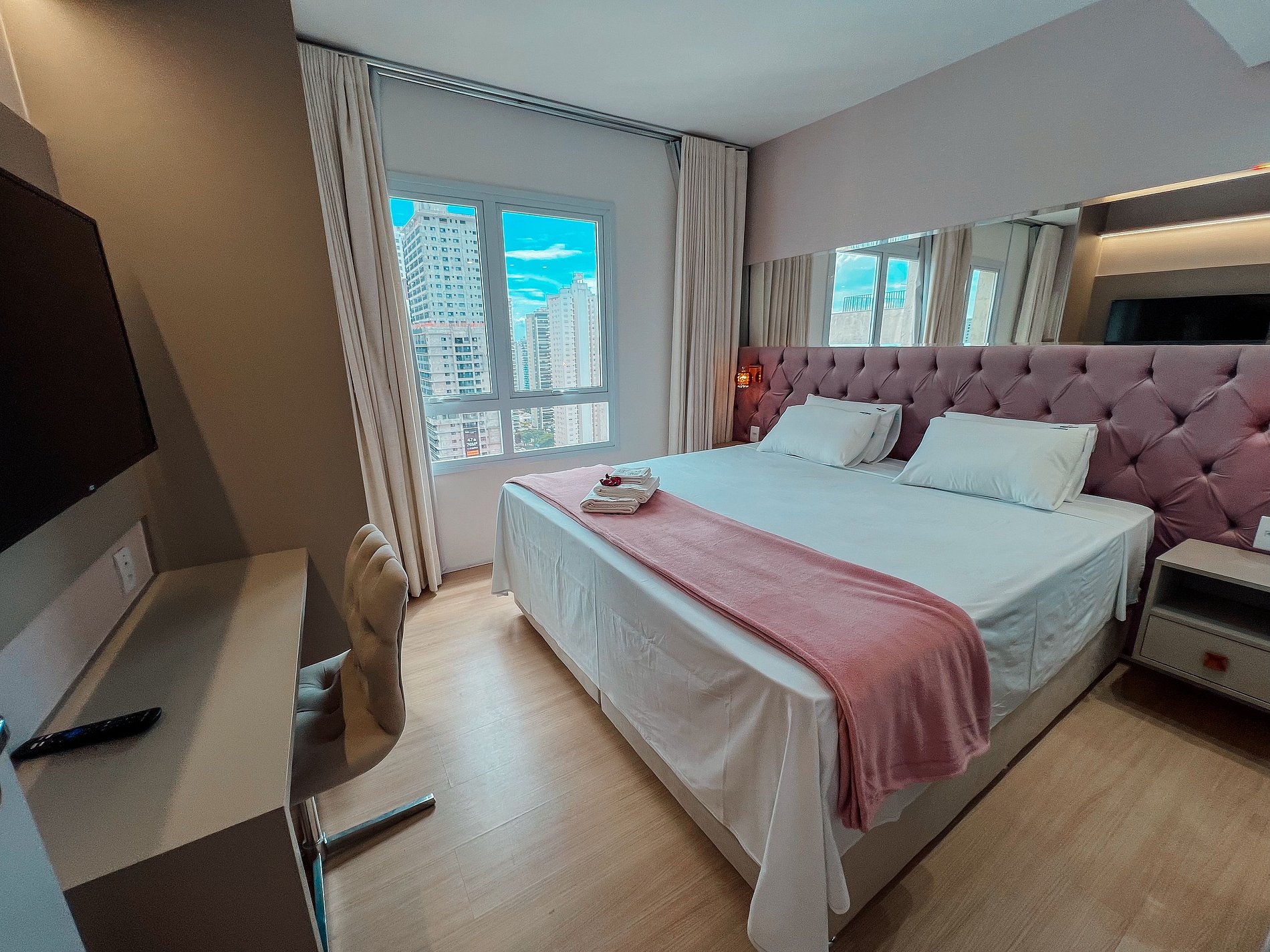 Self check in, ou seja, a autorização de acesso é feita de maneira remota. Hóspede deverá se identificar na recepção ao fazer o check in para retirar o cartão de acesso.