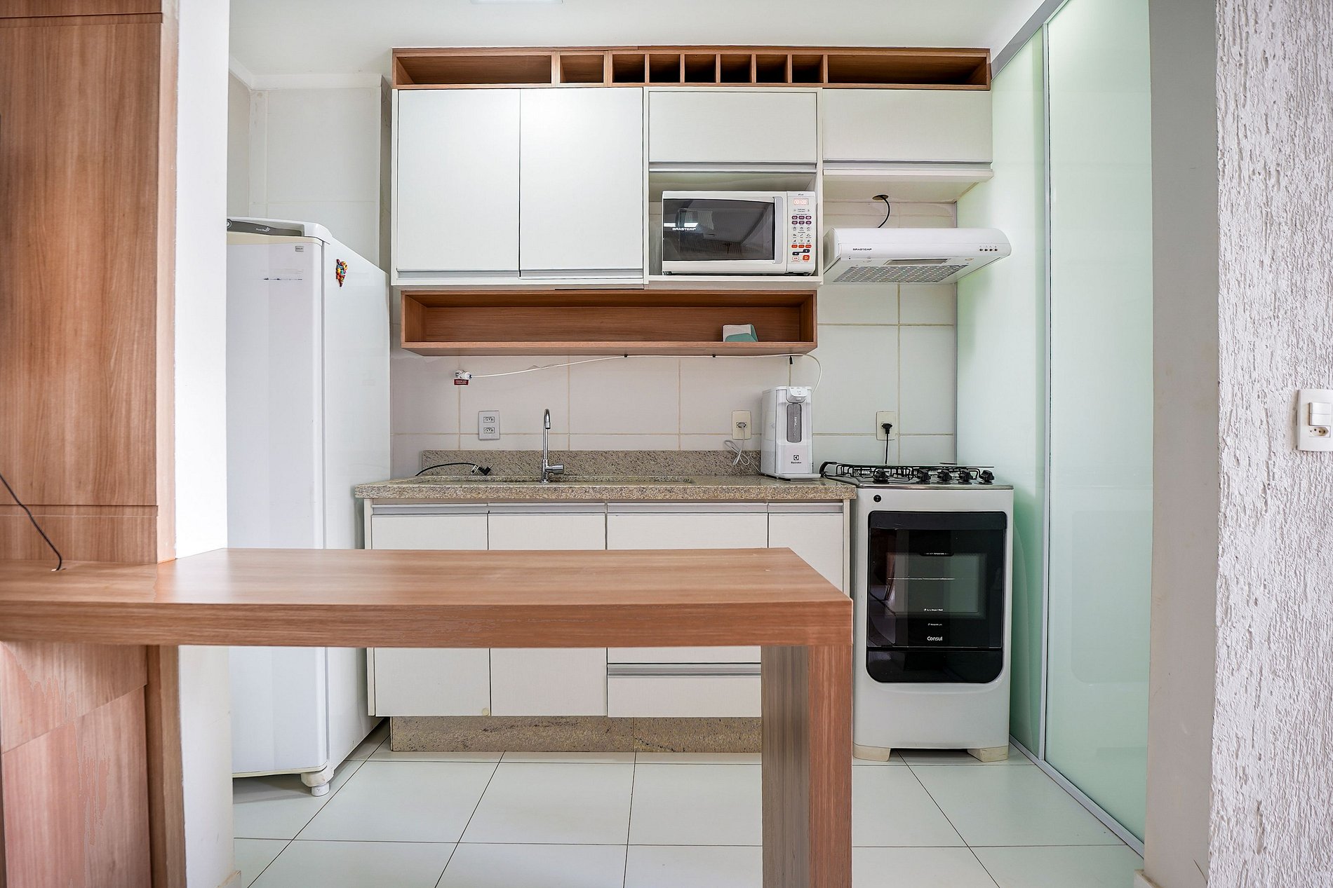 Possui os itens básicos (microondas, panelas, talheres, kit mesa posta, geladeira, roupa de cama, amenities, toalhas, etc)