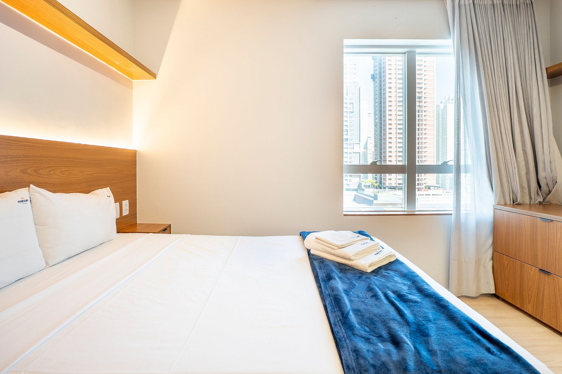 Self check in, ou seja, a autorização de acesso é feita de maneira remota. Hóspede deverá se identificar na recepção ao fazer o check in para retirar o cartão de acesso.
