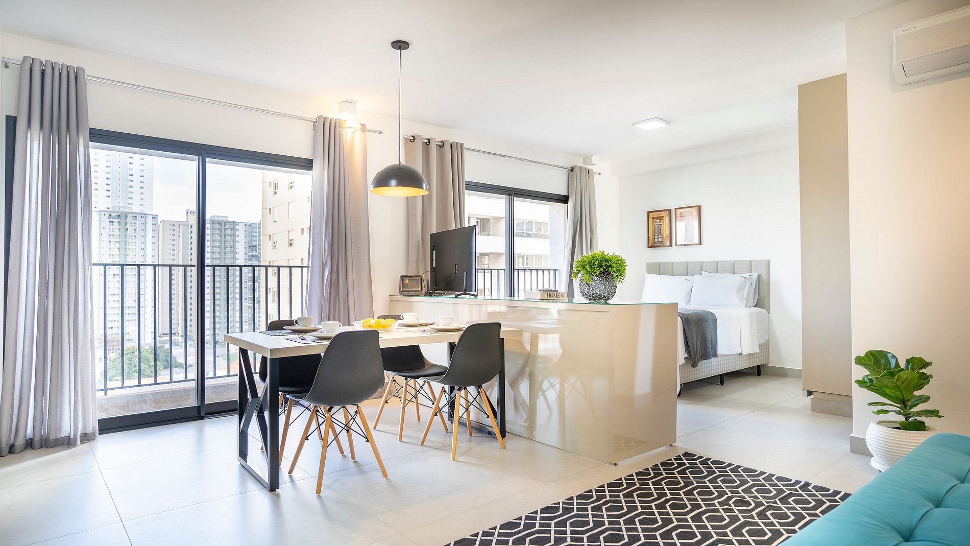 Self check in, ou seja, a autorização de acesso é feita de maneira remota. Hóspede deverá se identificar na recepção ao fazer o check in, enviaremos a senha para acesso ao flat através de aplicativo.